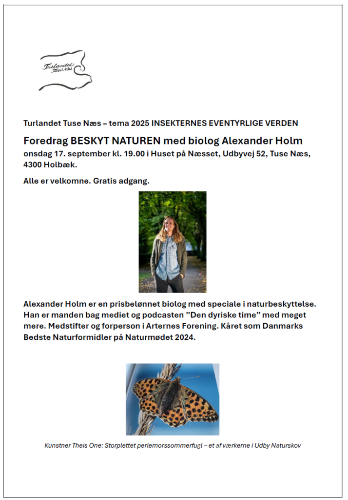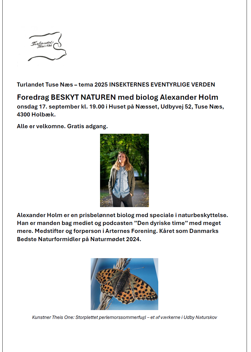 Foredraget er et led i Turlandet Tuse Næs temaet i 2025 og 2026 ”Insekternes Eventyrlige verden”